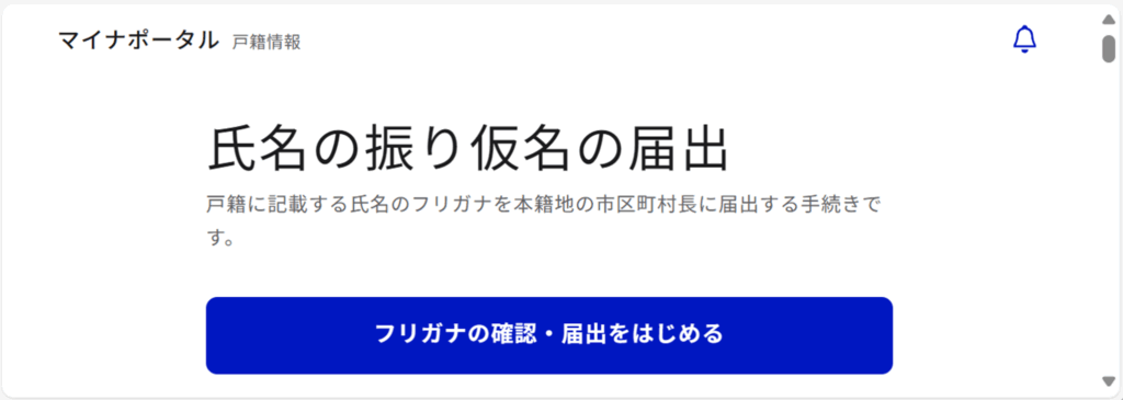 なお、マイナンバーカードを利用したオンライン手続き(マイナポータル)の場合、マイナポータルにログイン後、ページ内リンク(「氏名の振り仮名の届出(マイナポータル)」)からフリガナの確認や、届出手続きが可能です。